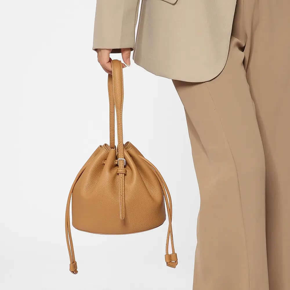 Gorgeous bag! Perfect size, not too large, not too small. Very practical with shoulder straps to choose from. Very attractive and lots of room without looking bulky. Its spacious enough to fit your essentials and a book or small tablet. The textured rope handle and drawstring are fastened by metallic hardware. Fitted with crossbody functionality...