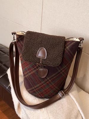 Style Street Trend Material Tweed Bags Style Bucket bag Size Medium Fashion Element Plaid Lining Texture Polyester Shape Bucket Closure Lid closure Hardness Medium-soft Bag Type App... read more